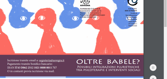L’evento OLTRE BABELE? Possibili integrazioni plurietniche tra psicoterapie e interventi sociali si svolgerà a Padova il 19 novembre 2016 dalle ore 9.00-13.30 presso l’ Ex Fornace Carotta, in via Siracusa, 61.…