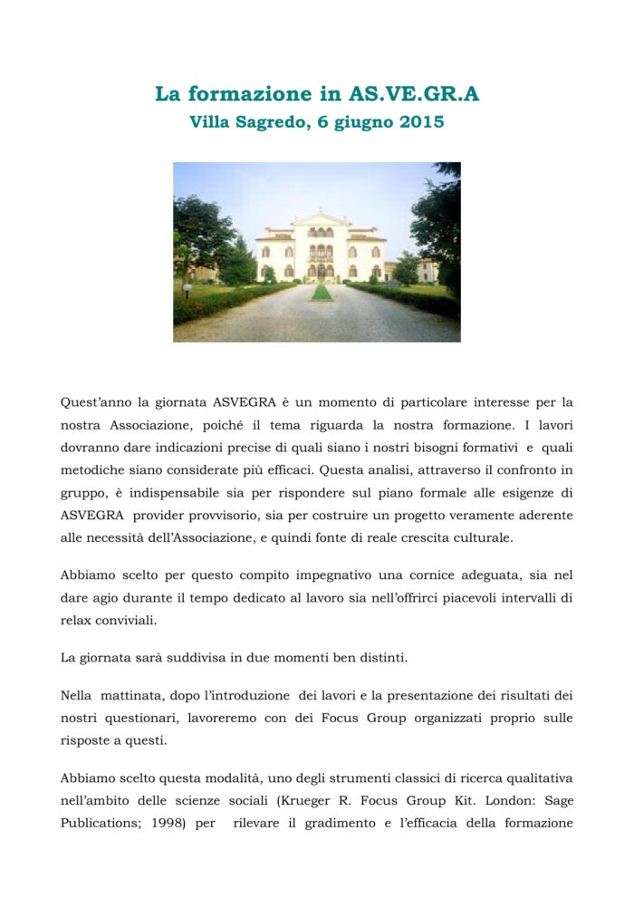 Il 6 giugno presso Villa Sagredo a Vigonovo (PD) avrò luogo la Giornata ASVEGRA,. La mattina prevederà un confronto sui bisogni formativi dei Soci e il pomeriggio, dopo la presentazione…